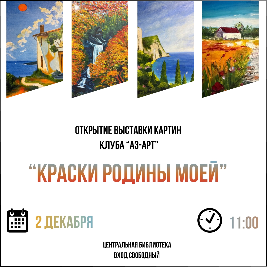 2 декабря в 11:00 двери нашей библиотеки распахнуться, чтобы представить Вам нечто особенное — совершенно новую выставку, в которую вложили частичку души талантливые художники клуба АЗ-АРТ.