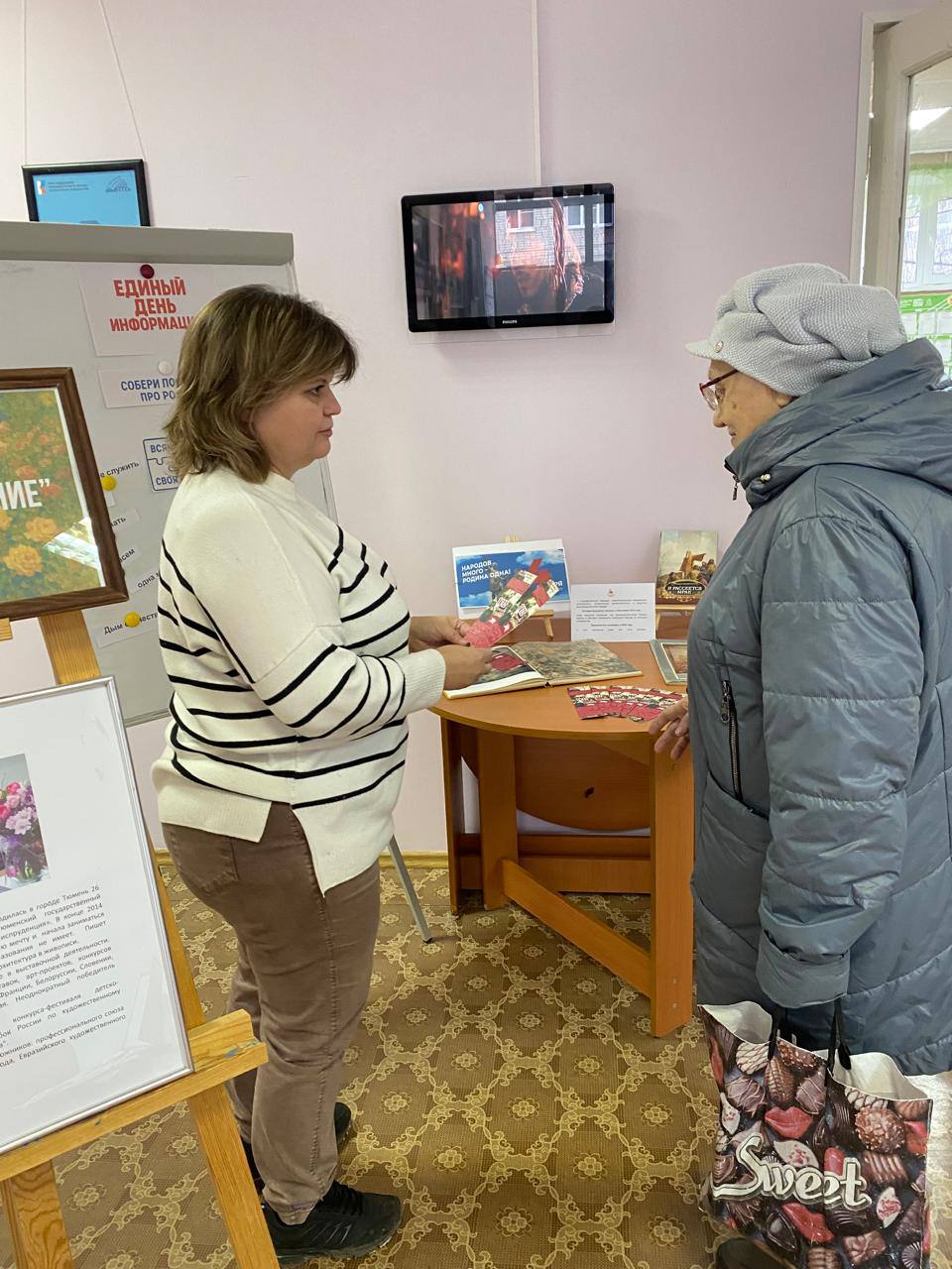 Все посетители библиотеки стали участниками акции «Время единства» — получив тематические памятки, они унесли с собой не только знания, но и символ праздника.
